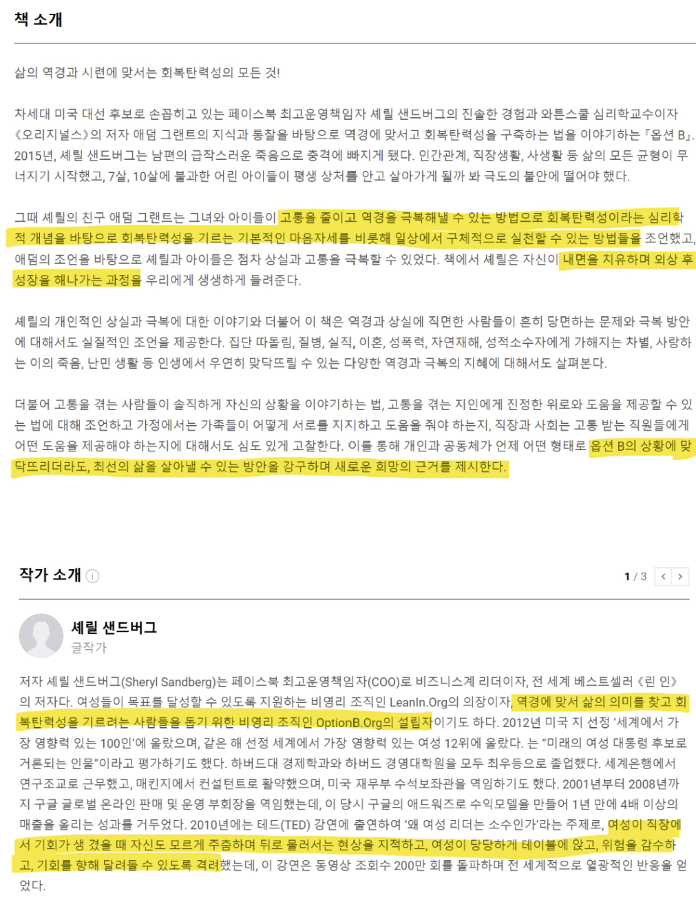 한줄평모든 삶에 필연적으로 따르는 옵션B의 삶을 더욱 잘 살아내는 회복탄력성을 위해