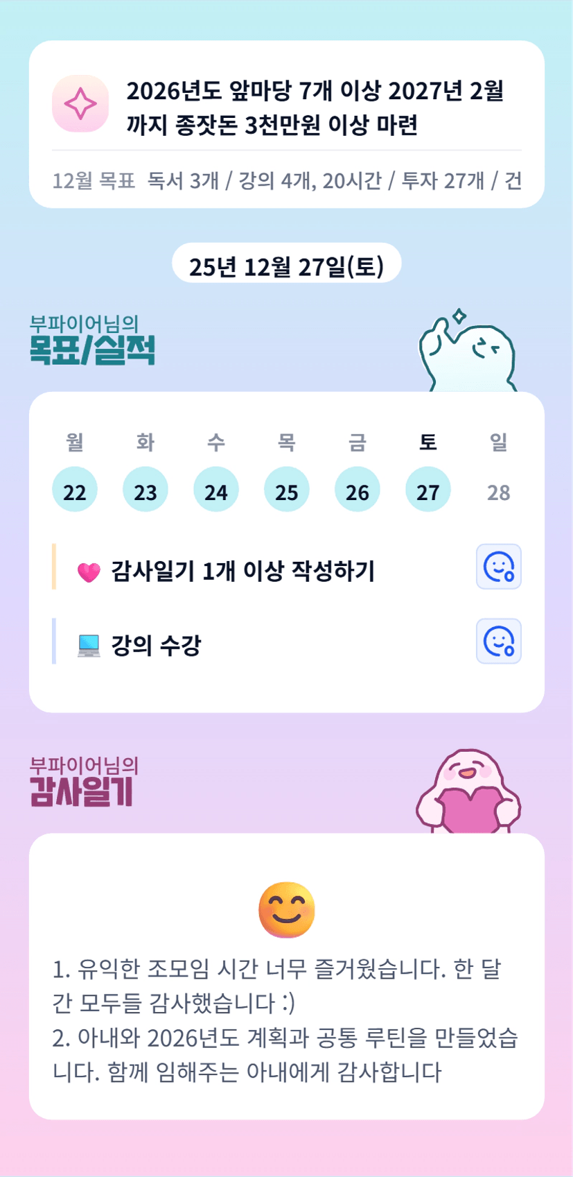 부파이어님 한 달간 감사했어요 2026년도 화이팅입니다. !