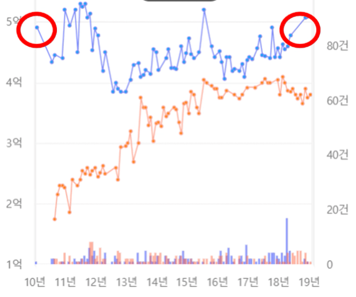 19년도에 겨우 분양가 수준을
