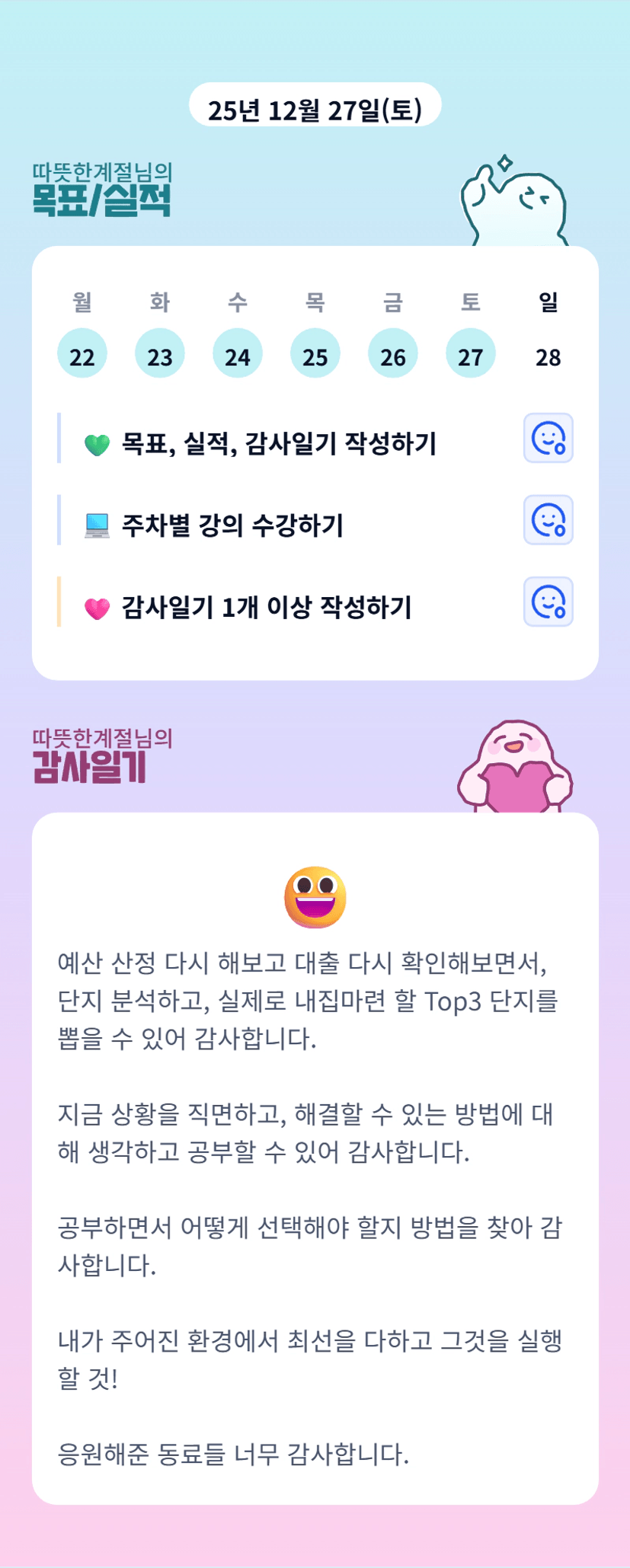 우와! 실제 내집마련 후보 top3 까지 뽑으시다니 조만간 후기 올라오나요~~ㅎㅎ 원래 목표를 이루기 직전이 제일 힘든 순간이라고 하더라고요..! 이제 거의 다 오신 것 같아요 조금만 더 힘내보아요 계절님~:)