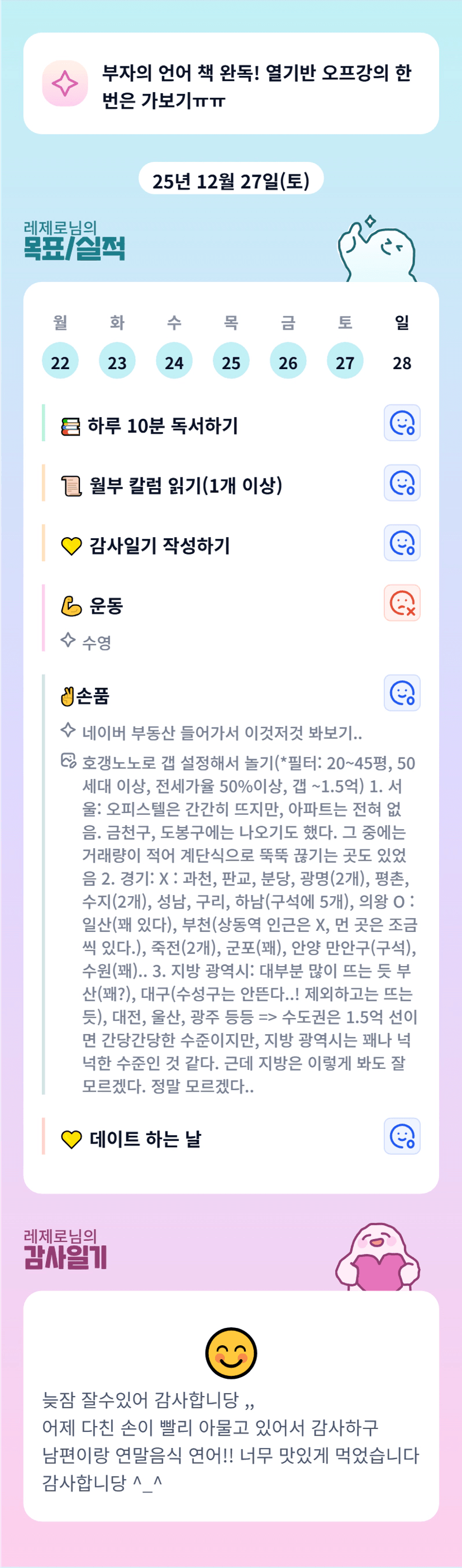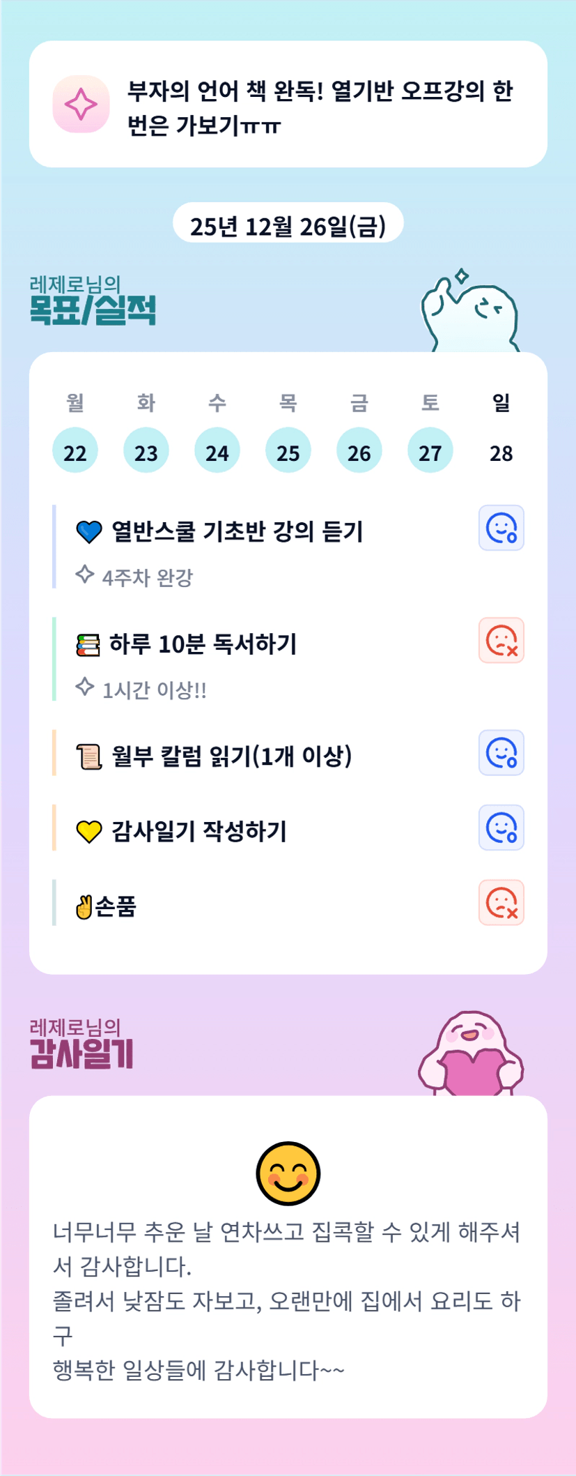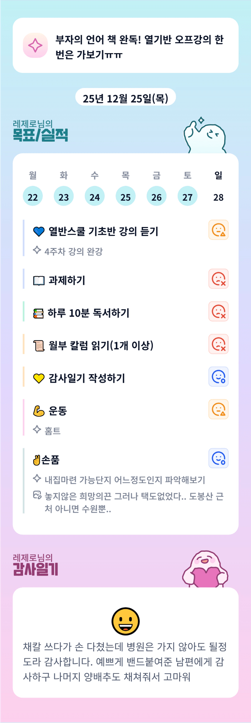 증말 쉬는날까지 꾸준하기 쉽지않다… 그치만 인증을 안했을 뿐