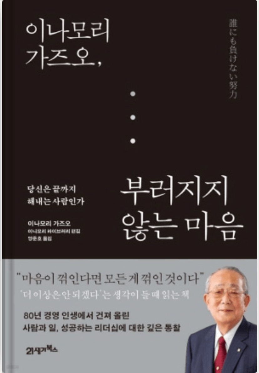 그는 ‘특별할 것 없던 나의 인생을 지탱해준 것은, 강렬한 의지와 노력, 뜨거운 꿈과 선한 동기’라고 말한다. 누구나 떠올릴 수 있지만 끝까지 유지하기 어려운 그 가치들을 이나모리 가즈오는 한평생 지켜냈다. 그리고 그것이 결국 그의 삶을 성공으로 이끌었다.