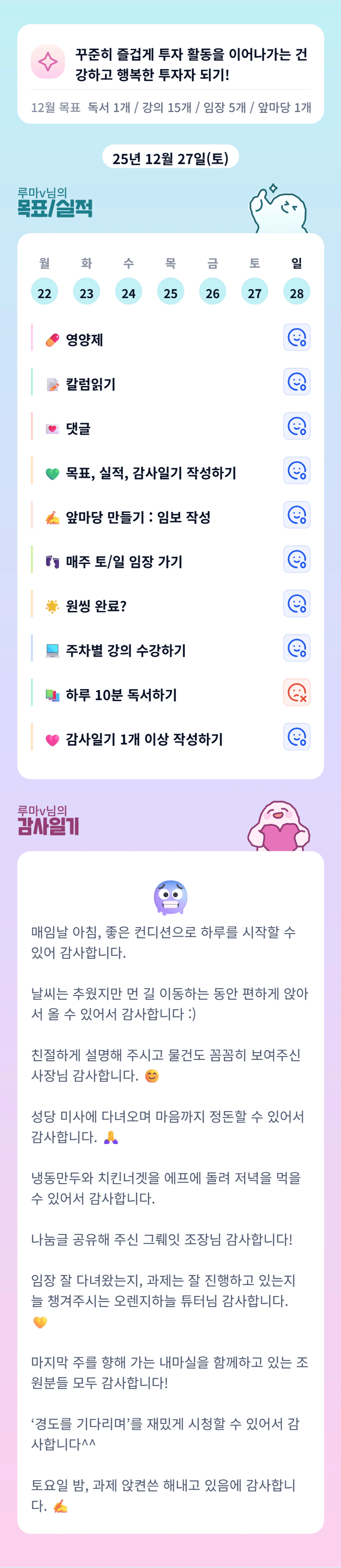 루마님 감사한 일이 많은 하루 고생하셨습니다 ^^