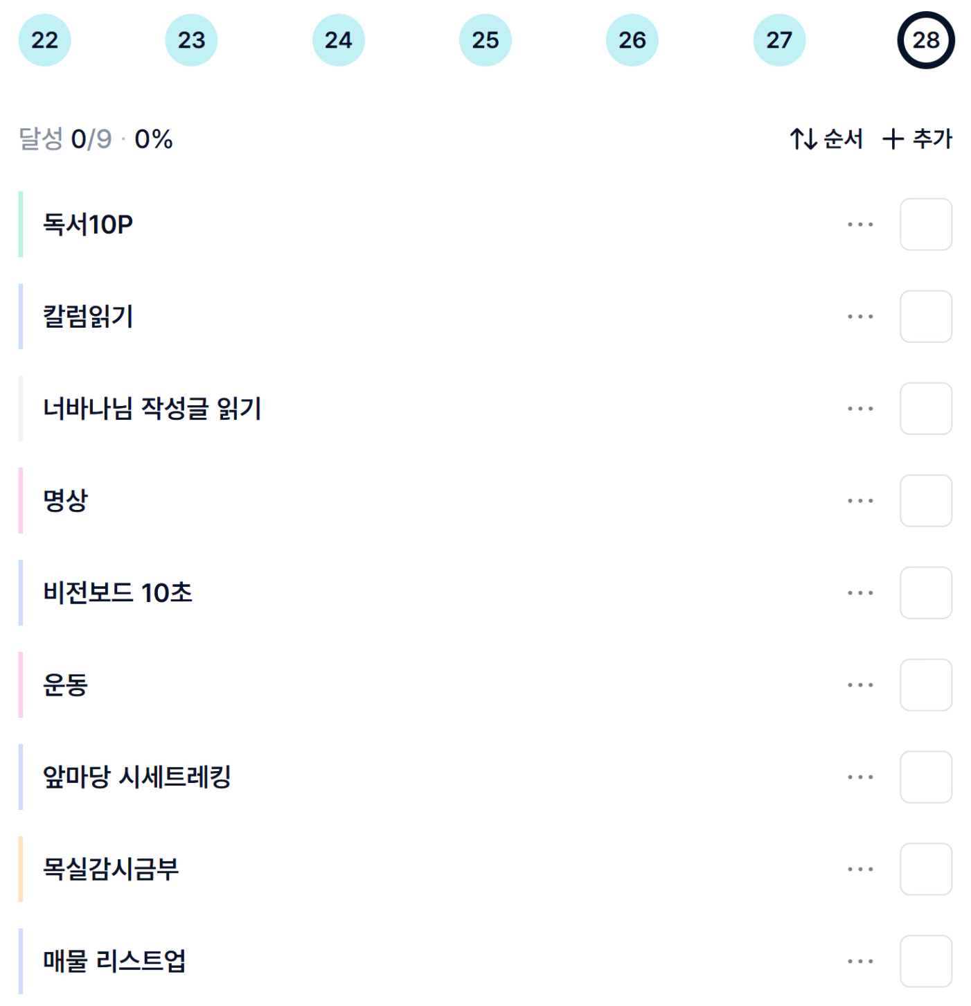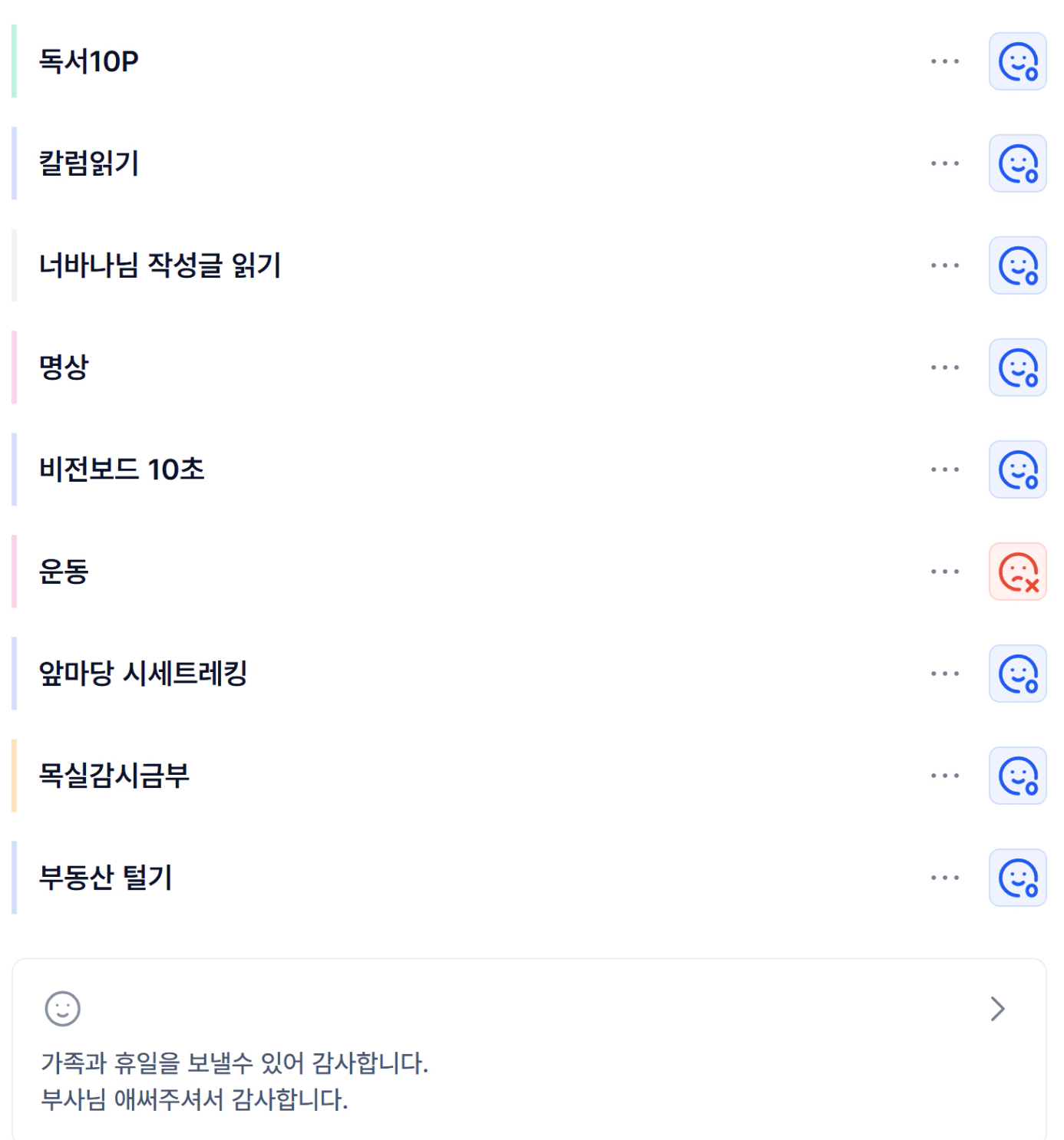 나는 건강한 사람이다.나는 부단히 노력하는 성실한 사람이다.나는 2025년 앞마당 10개를 만든다.나는 2026년 3호기 투자한다.나는 2028년 4호기 투자하고, 순자산 15억 달성한다.나는 2030년 5호기 투자한다.꾸준함은 성공의 최고 덕목이다. 나는 꾸준히해서 2035년 30억 부자가 된다.나 우가행은 해내는 사람이다.나는 한다.나는 해낸다.나는 반드시 된다.