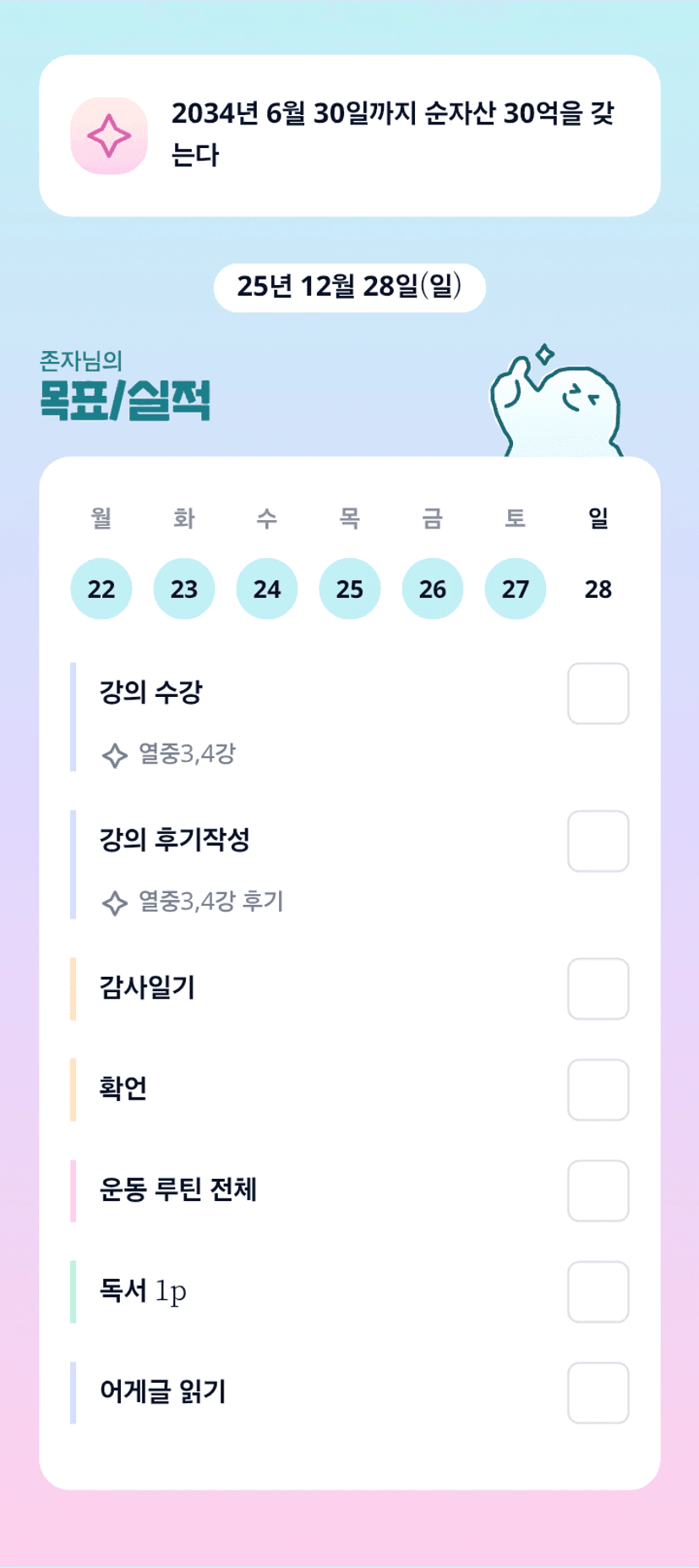 2034년 6월 30일까지 순자산 30억을 갖는다