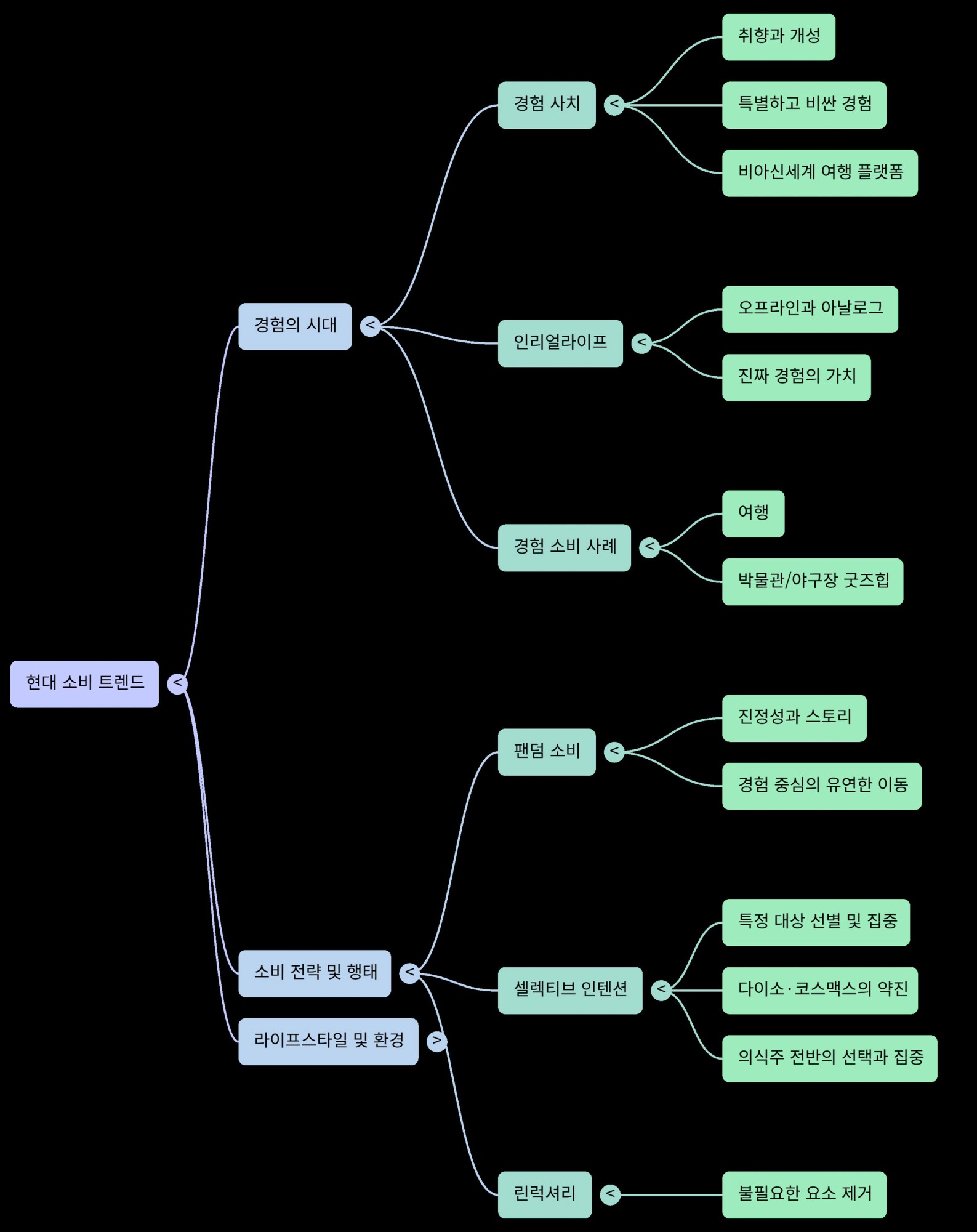 4장은 앞선 장들에 비해 한결 가볍고 재미있게 읽혔다. 거창한 전망이나 숫자보다, 지금 실제로 우리 일상에서 벌어지고 있는 소비 트렌드를 다루고 있어 공감하며 읽을 수 있는 장이었다. 특히 요즘 소비 시장이 ‘소유’보다 ‘경험’에 가치를 두고 있다는 흐름은, 내가 체감하고 있던 변화들을 말로 정리해주는 느낌이었다.
