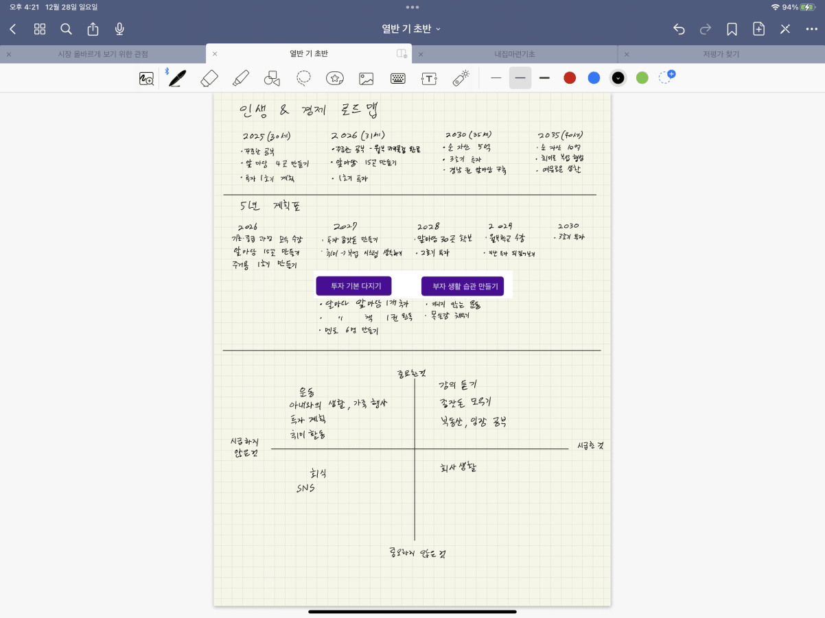 - 투자: 고정지출 재정비 (급여, 이자, 저축 등 정리), 열반 기초반 수강