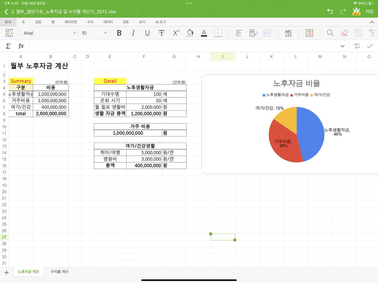 노후 자금, 목표 금액 계산을 위한 은퇴시간 계산기,