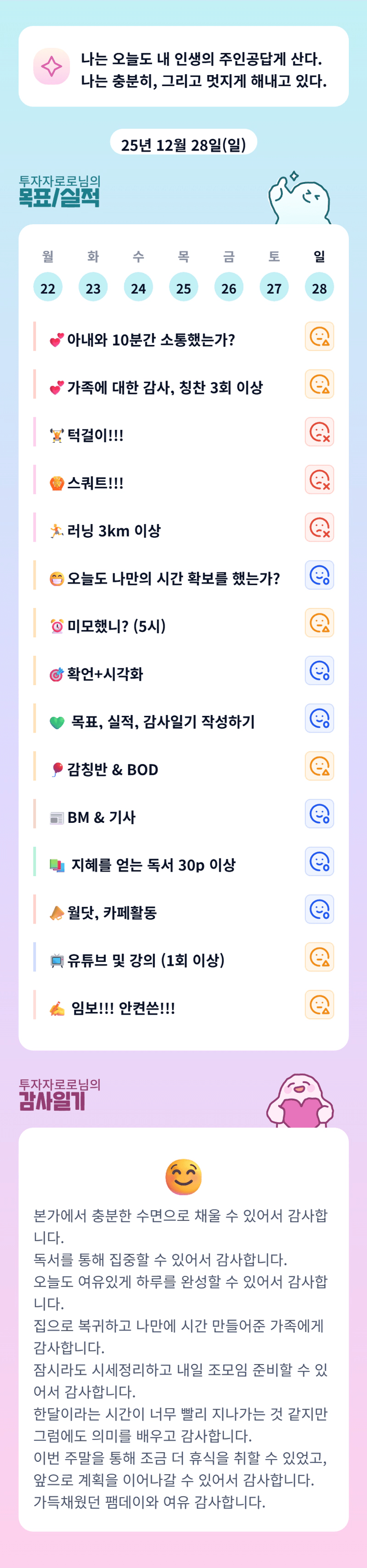 나는 오늘도 내 인생의 주인공답게 산다.