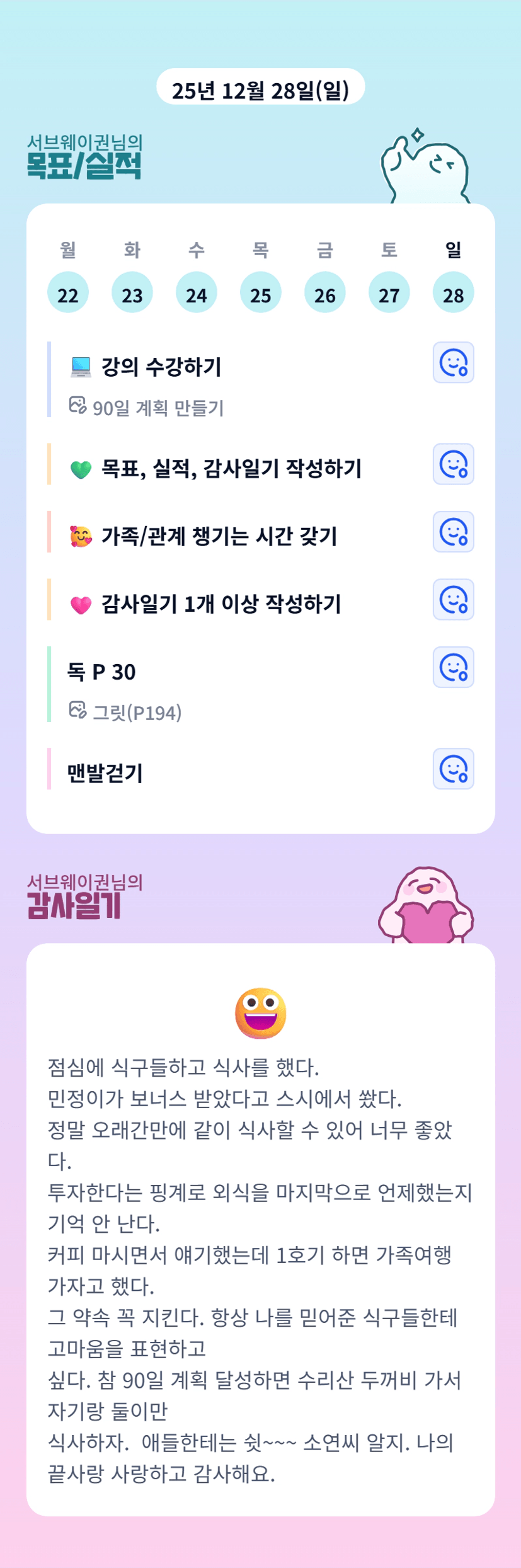 권님... 너무 스윗하셔요ㅠㅠ진짜 멋진아빠 멋진남편의 표본입니다!!!! 항상 존경하고 응원해요 권님~~~ 1호기 꼭 해보자구요! 언제든 도움 필요하시면 연락주세요 ♡ 아자아자!!!!!!!!!1