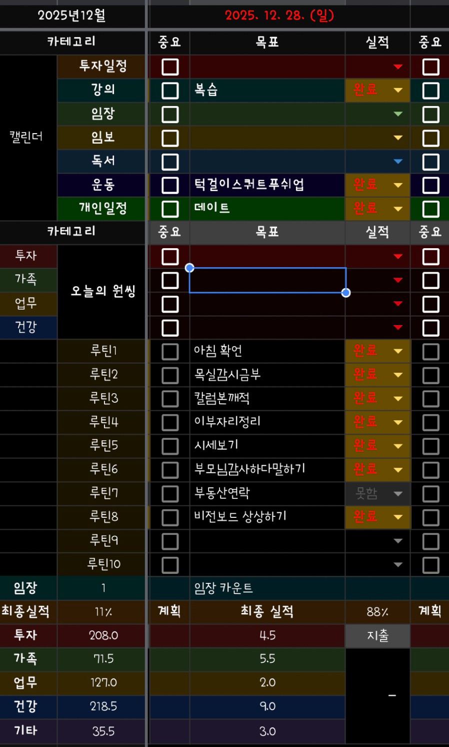-일하고, 운동하고, 친구만나고, 강의 복습하고, 책도 읽고, 데이트도하고 알찬 하루 보내서 감사합니다.