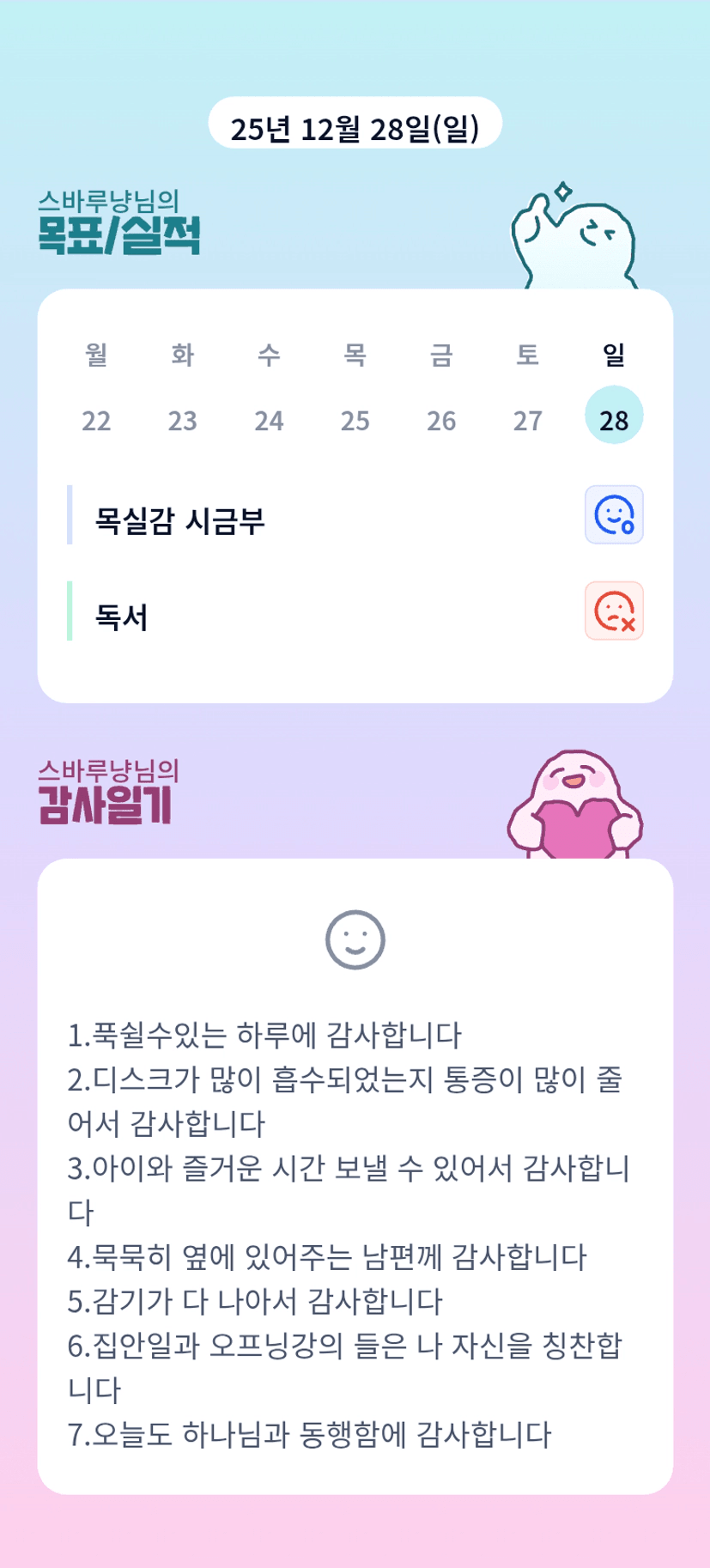 스바루냥님 오늘도 고생 많으셨어요~ 디스크... 동지시군요ㅠㅠ 최대한 누워계셔유ㅠㅠ 화이팅입니다!