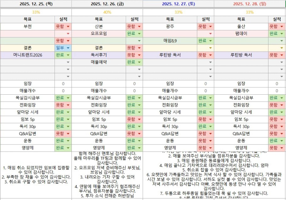 • 주간 중점사항(원씽/목표)