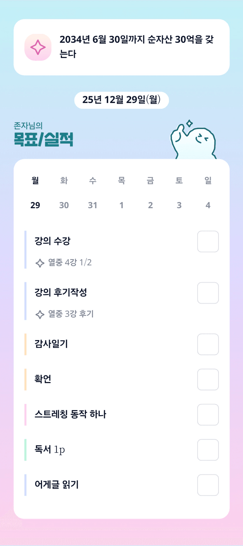 2029년 6월 30일까지 나는 순자산 10억을 갖는다