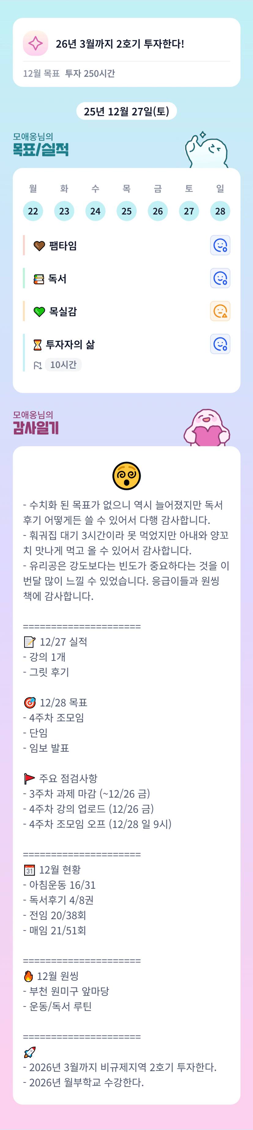 오옹 이번에 월학 가시나요?! 26년 시작이 좋네요 월학에서 더더 성장하셔서 성공적인 2호기까지 해내시기를 ! 너무 축하드려요 !!!