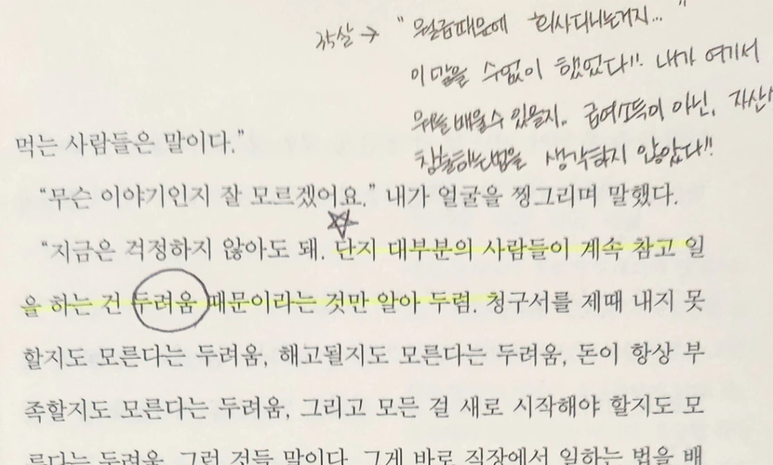 “예전에는요, 회사를 언제든 그만둘 수 있는 상태가 스스로 선택하는 삶이라고 생각했어요. 왜, 우리 흔히 얘기하는 시원하게 언제든 사직서 날리고 나갈 수 있는 사람이 멋있어 보죠.