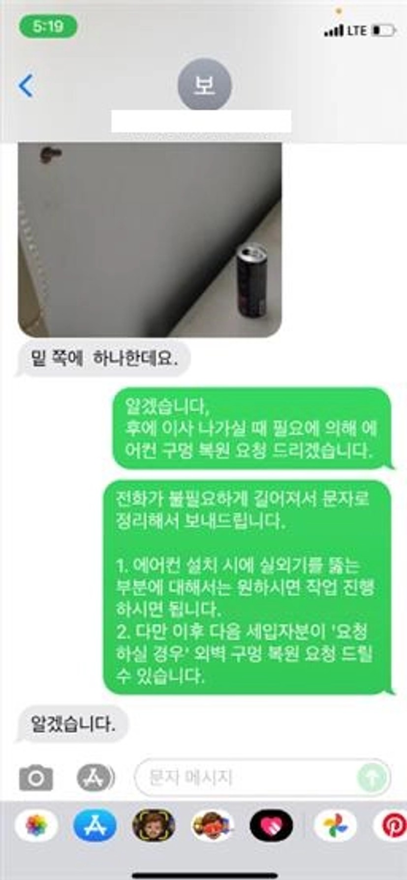 계약 후가 더 고비였습니다. 악성 세입자는 퇴거일 연기 후에도! 실측 방문 시 사진 촬영이 개인정보 유출이라며 저를 쫓아냈고, 에어컨 구멍도 안 채우고 나갔어요. 게다가!