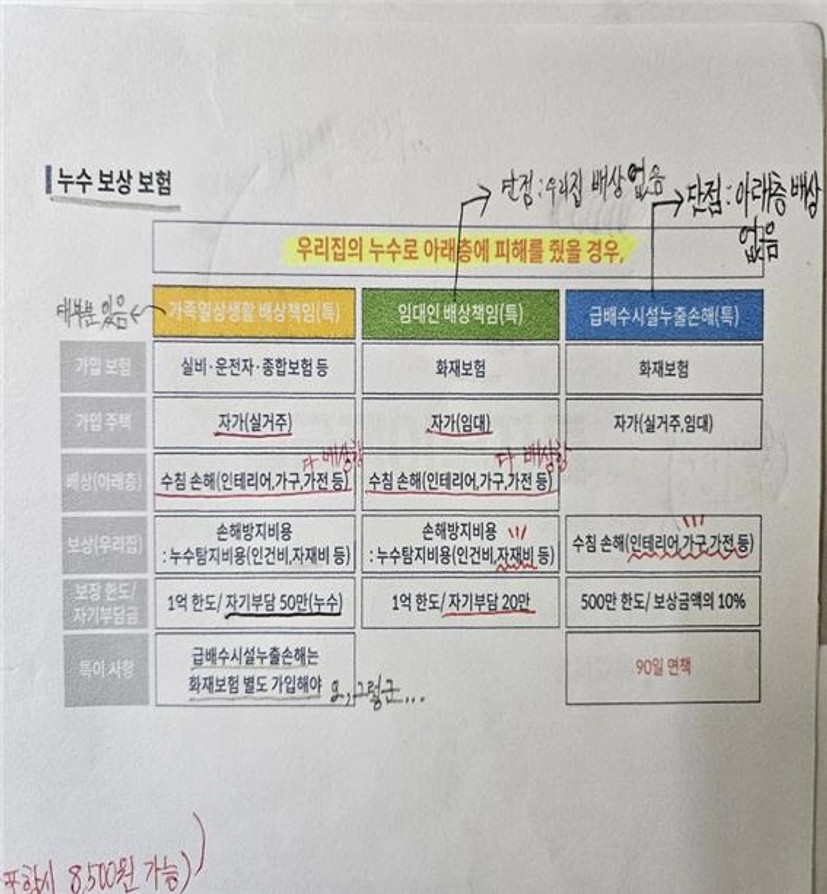 잔금등기 후, 삼성화재 누수 보험(가족일상생활+임대인배상책임+급배수시설)에 가입한 것이 신의 한 수였습니다.