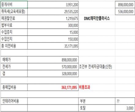 E 매물(최종 매수): 악성 세입자 때문에 사진으로만 확인해야 했지만, 수리비를 감안해 1,500만 원을 네고하여 8.65억에 계약(전고대비 -20%)