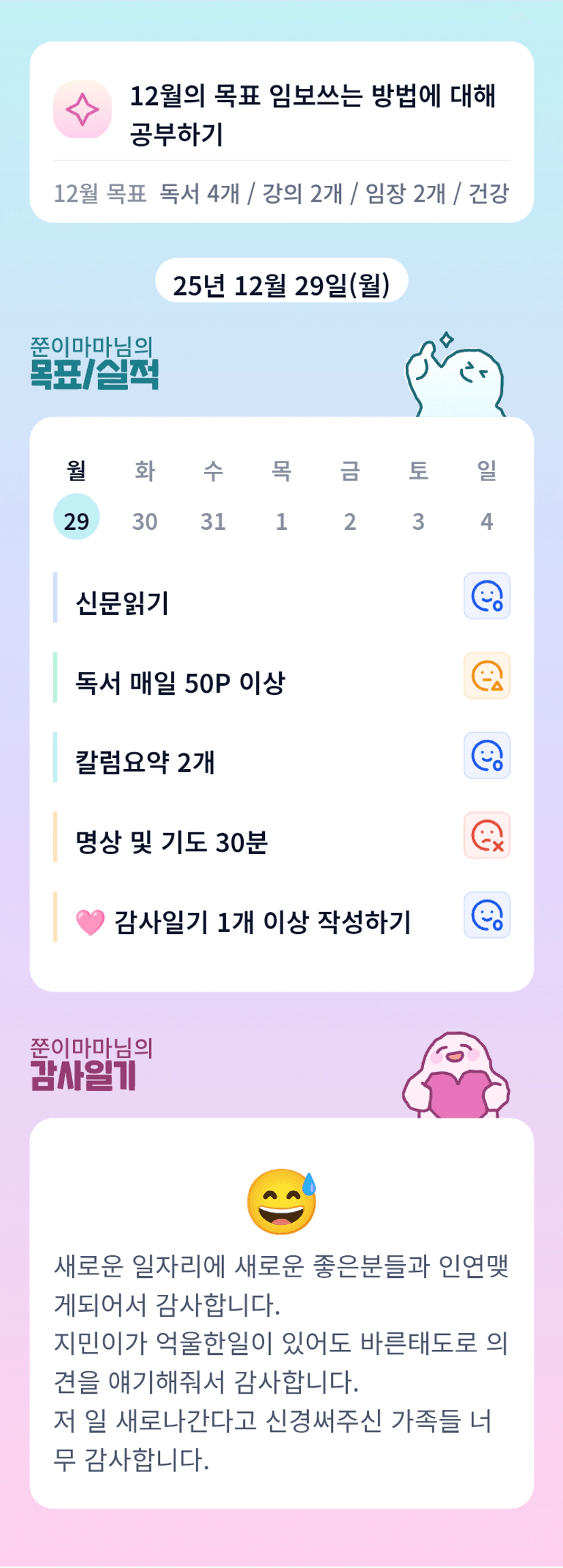 쭌이마마님 :) 잘지내시죠~?? 오늘도 고생하셨습니다!!! 화이팅해요^^
