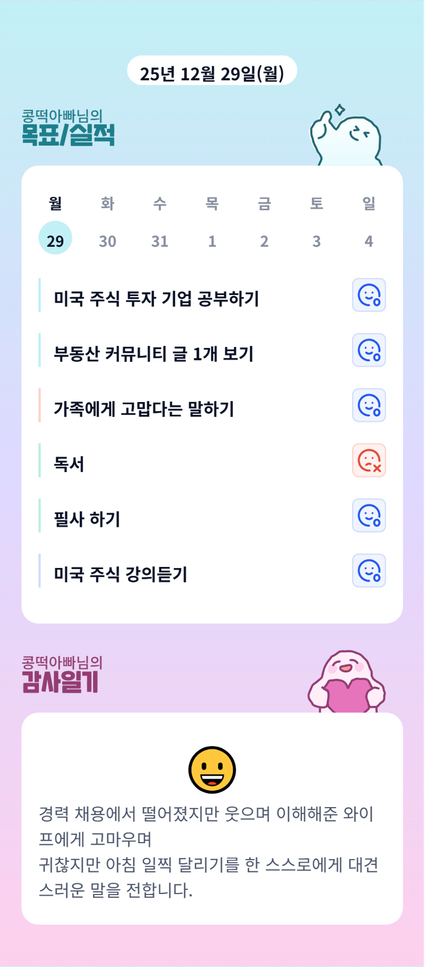 콩떡아빠님 2026년엔 좋은일만 가득할 거에요! 완전 응원합니다💗 그리고 가족에게 고맙다는 말하기..너무 멋진데요!? 저도 도저언..!