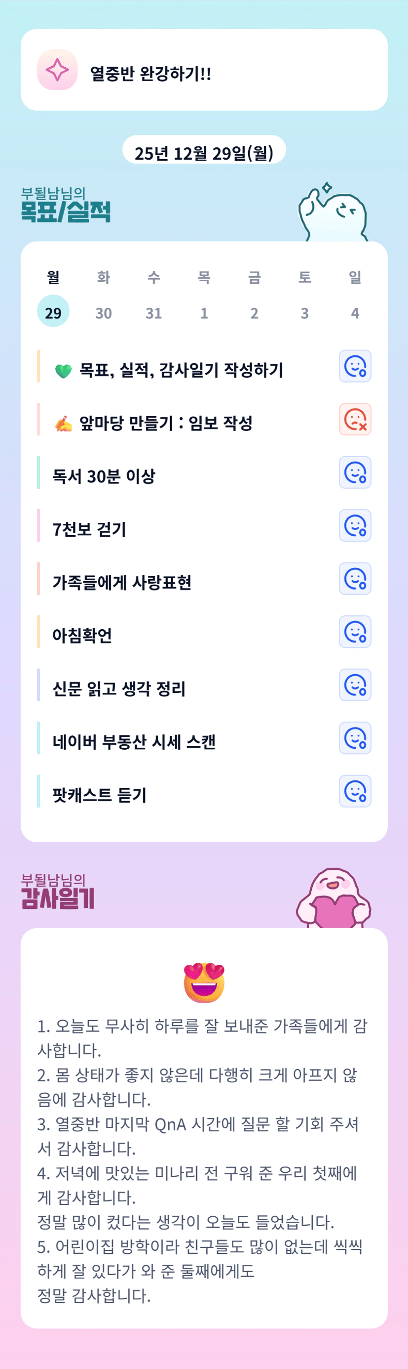 될남님!! 몸은 좀 괜찮으신가요ㅠ 아프지마용.. 그리구 열중에서 재이리튜터님이 될님님 질문에 답변해주시는데 왜 제가 다 기분이 좋은지!! 아이와 가족들과 행복한 연말 보내세요오♡