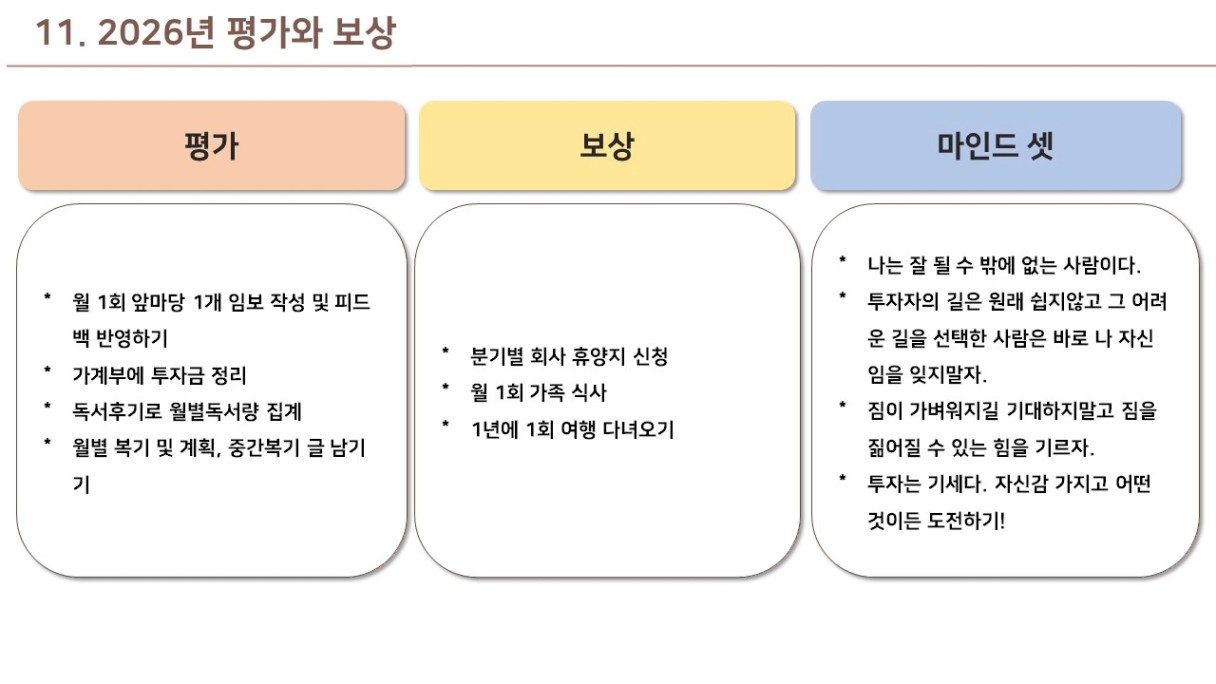 나우님! 복기와 계획을 보다보니 저도모르게 빠져들면서 보게됐습니다 ㅎㅎ 알찬 26년도 계획이 제가 다 기대가 됩니다 ^^ 응원하겠습니다 건강 잘 챙기면서 하세요 파이팅!!