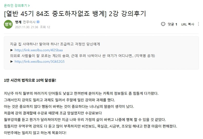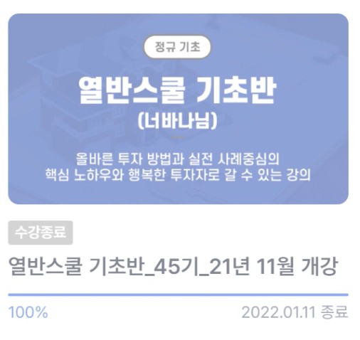 21년 3월에 네이버카페만 가입하고 정규강의는 21년 11월에 열반스쿨 기초반 강의를 들었네요.