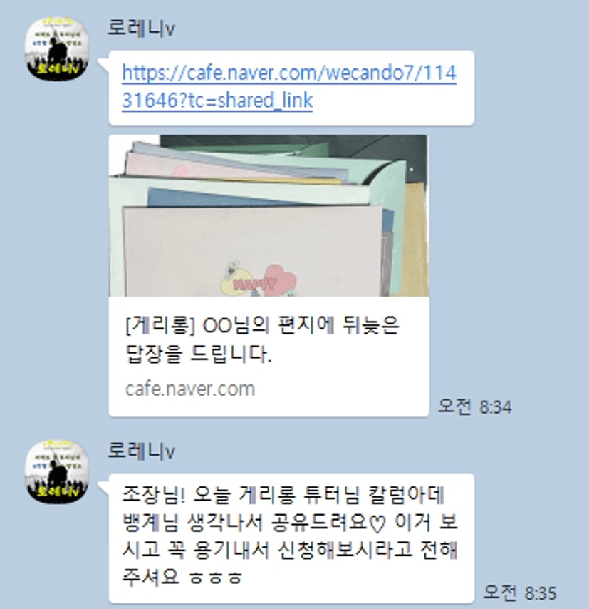 어려움이 있을때 채팅방에 나누면 내 일 같이 고민을 들어주신