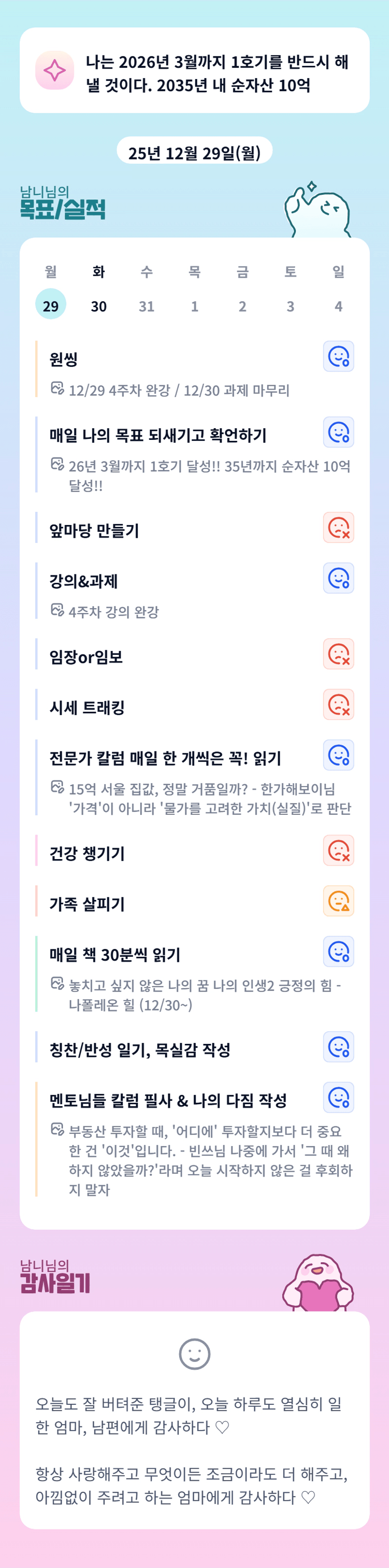 놓치고 싶지않은 나의 꿈 나의 인생 읽고 계시군요! 이번 달 목표권수에 그치지 않고 새롭게 도전하는 모습 보기 좋습니다!! 이렇게 하시다 보면 그릿은 만들어질 거에요~ 스스로를 나는 끈기없는 사람이라고 규정 짓기보다 나는 할 수 있는 사람이라고 생각해봐요 사람은 생각대로 만들어진다고 하니까요:)