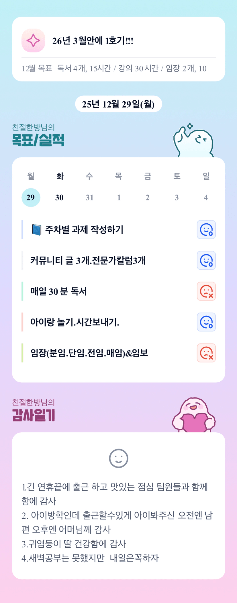 방님~~ 어제도 대단하신 하루🩷 멋있어용!! 오늘 못 만나서 슬퍼요😢