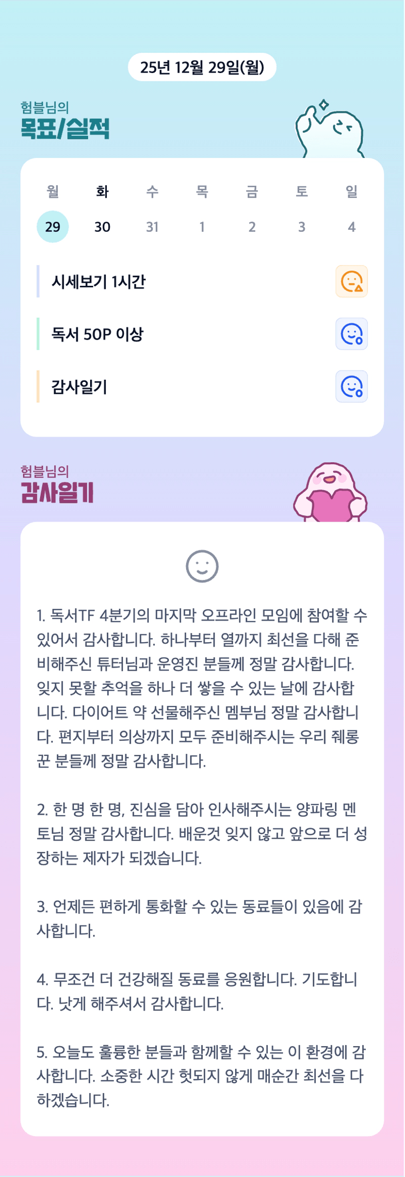 쌔앰~ 새해 복 많이 받으세요. 쌤 덕분에 (아무런 활동도 못하지만) 월부에 붙어 있습니다. ㅎㅎㅎ 일에 치인다는 변명과 자책감 등등 다양한 감정들을 느끼면서.... 말만 해야지 제대로 해야지... ㅎㅎㅎ 닉넴 바꿀까봐요. 변명쟁이로ㅋㅋㅋㅋ 월부 최애 험블 쌤~ 2026년 새해 복 많이 받으세요. 항상 건강하시고 행복하시고 하루하루 앜!!!!!!!!!!!!! 정신으로 발전하시는 한 해 되시기 바라겠습니다. 2026년 새해 맞이하면서 함께 저도 외쳐봅니다. 앜!!!!!!!!!!!!!!!!!!!!!!!!!!