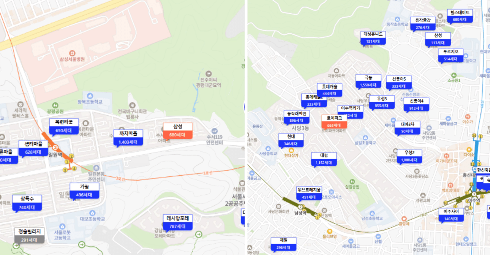 단지 상가에 자체적으로 수영장이 있을 정도로 커뮤니티가 잘 되어 있고, 사실상 사당역(4호선, 7호선 더블) 역세권이기 때문에 입지와 교통은 말할 것도 없고요!