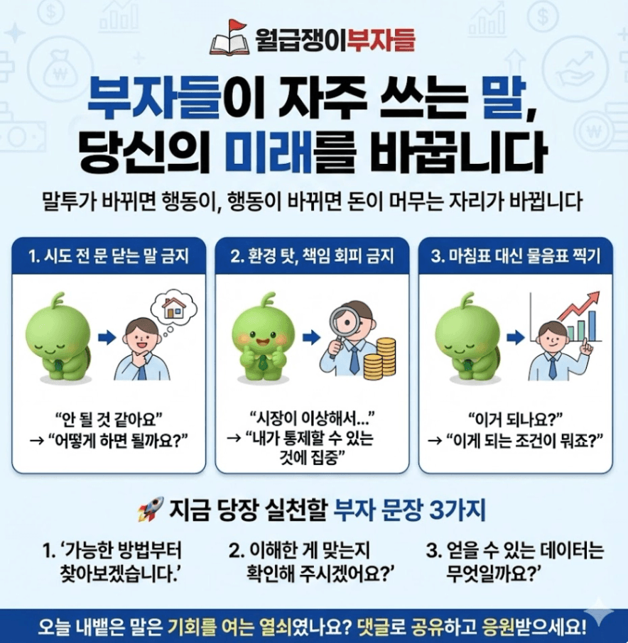 댓글로 오늘 여러분이 실천한 '부자의 한 마디'를 공유해 주세요