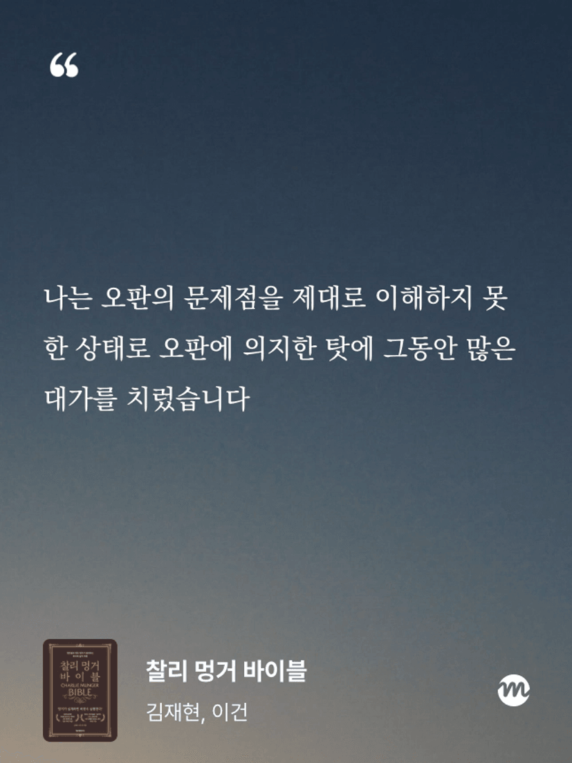 또한 멍거가 강조하는 지적 겸손과 자기 반성은 투자 실패를 대하는 태도에도 큰 힌트를 준다.
