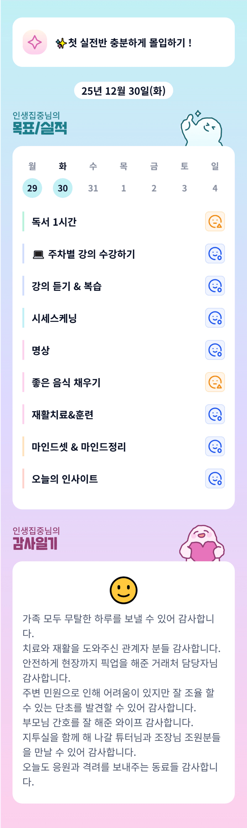집중님 지투화이팅이에요!!!! 올한해너무너무 고생하셨구 한번이라도 더 뵐수있어서 좋았어용~