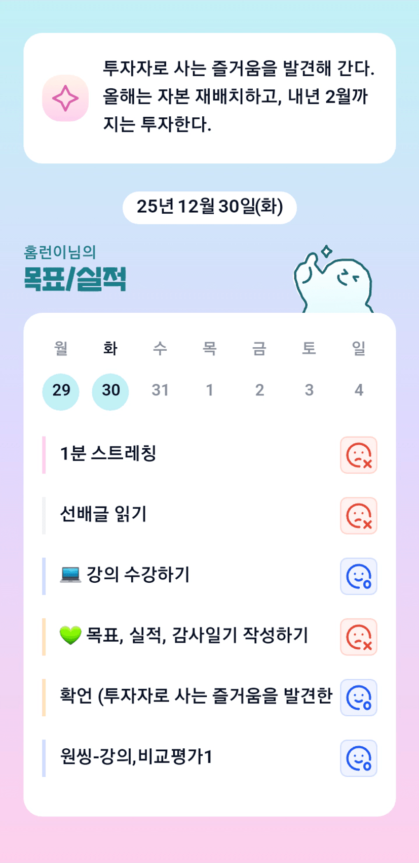 목표 다 못채워도 원씽만 잘 해내도 잘한거라했어요 :) 오늘도 고생많으셨습니다!!