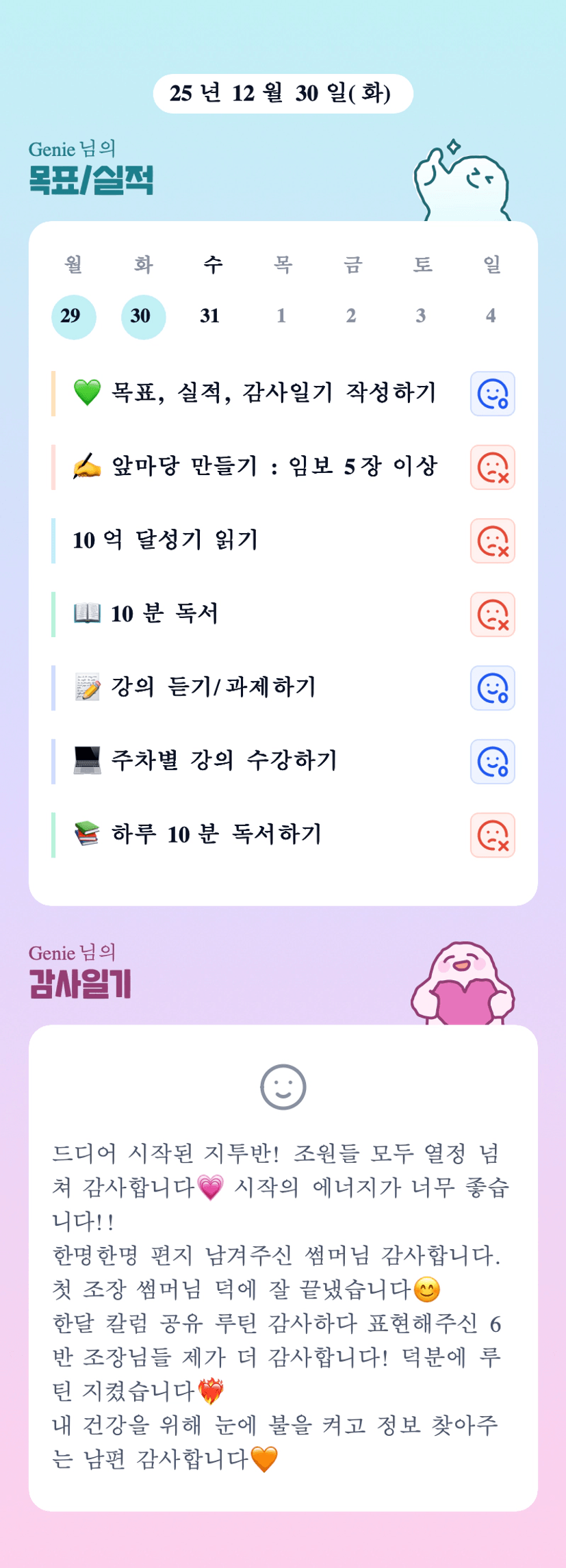 열정 넘치시는 지니님과 한달 함께하게 되어 행복합니다 잘 부탁드려요 ❤️