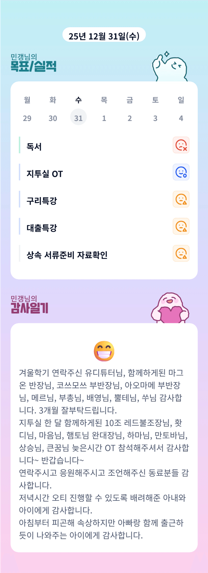 25년 노력하고 애쓰신 한 해 고생 많으셨습니다. 새해 복 많이 받으세요 🙏🧡
