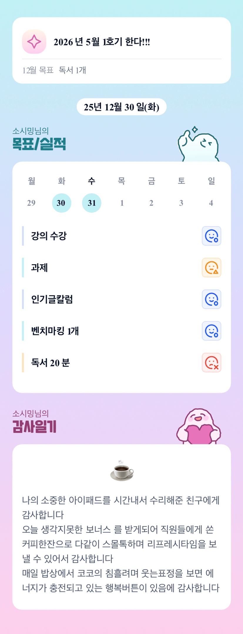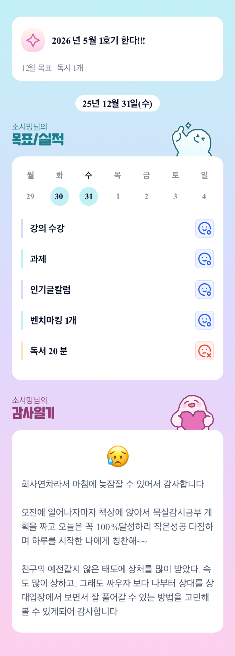 작은 성공 다짐! 좋은 말이네요~ 예쁜 말같아요~ ^^ 2025년 마지막 날 따뜻하게 보내세요~ ^^
