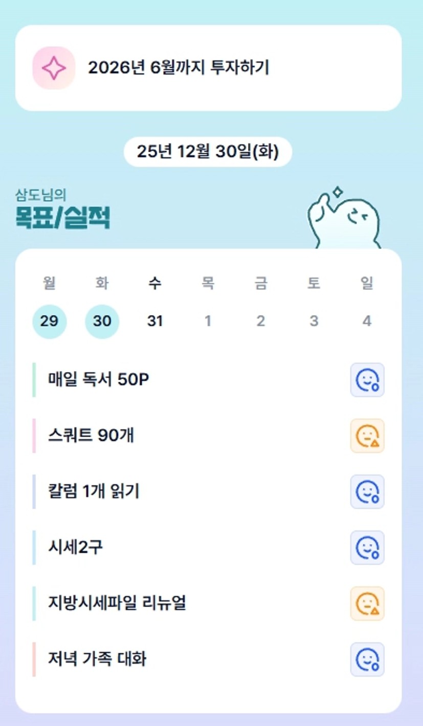 2. 시세트래킹 전면 리뉴얼 하면서 생각보다 할만하고, 생각보다 재미있음에 감사합니다. 한 땀 한 땀 시간이 오래 걸리지만 소중한 보물지도 완성해서 26년에 보물 찾아서 결과로 만들기를 다짐해 봅니다.