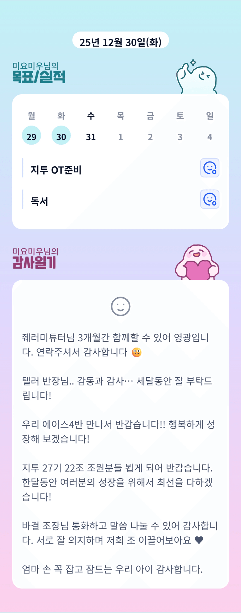 미요님 함께할 수 있어 너무 영광입니다! 한 학기 잘 부탁드립니다💛