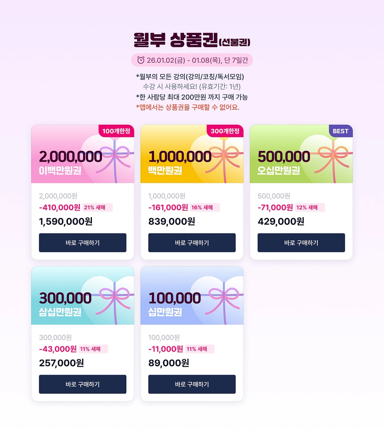 - ์๊ธ์์ด๋ถ์๋ค ๋ชจ๋ฐ์ผ ์น ๋๋ PC์ ํตํด ์ด๋ฒคํธ ๊ธฐ๊ฐ์๋ง ๊ตฌ๋งคํ ์ ์์ต๋๋ค. (์ฑ์์๋ ์ํ๊ถ ๊ตฌ๋งค๊ฐ ์ง์๋์ง ์์ต๋๋ค.)