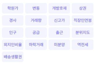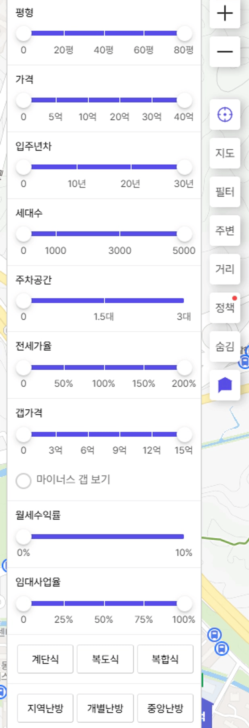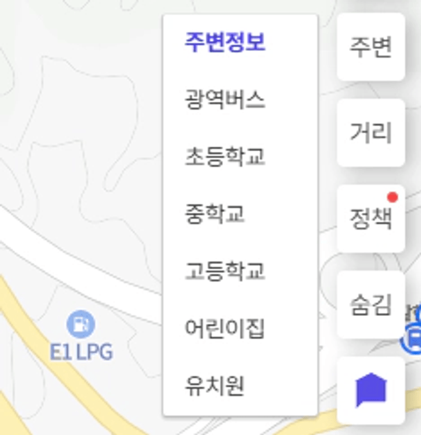 호갱노노 지도 오른쪽에는 입지 판단에 중요한 기능들이 모여 있어요