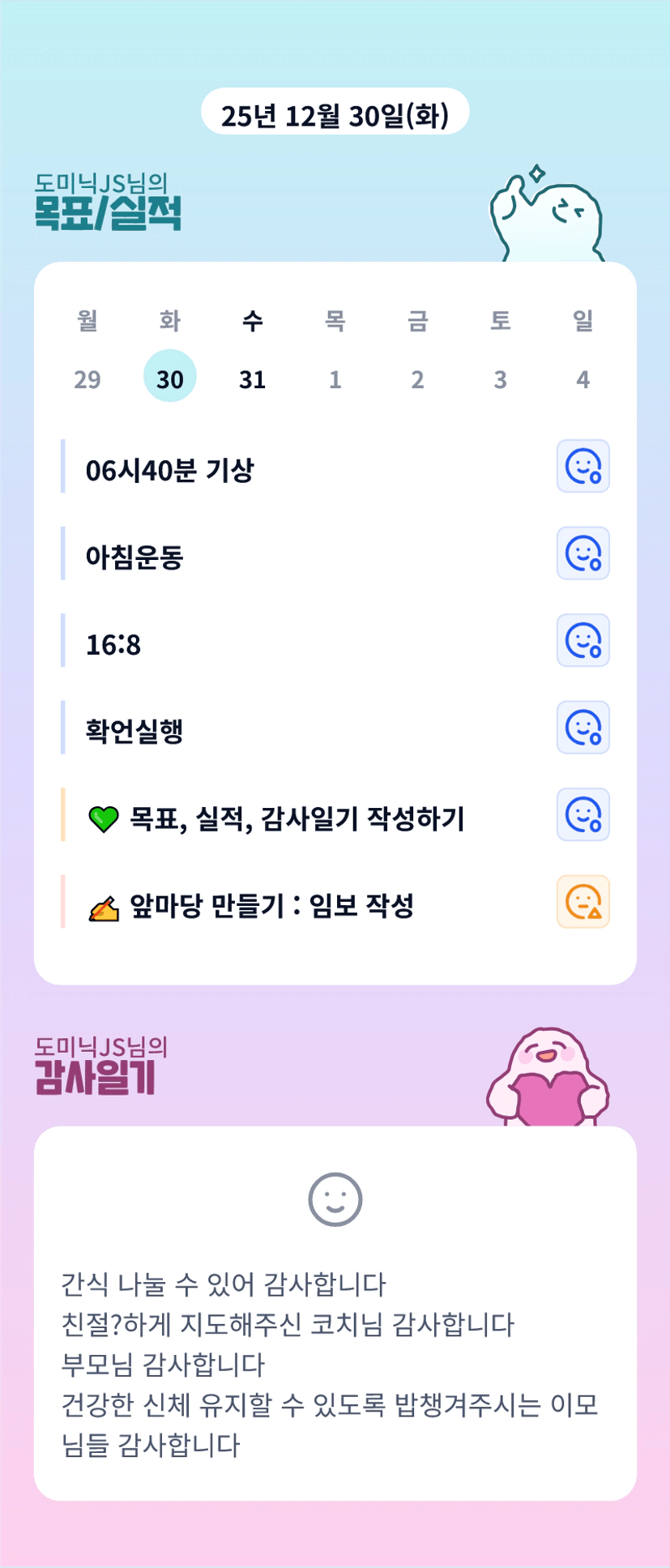 갓생러시네요~~ 요번달 잘 부탁드려요~