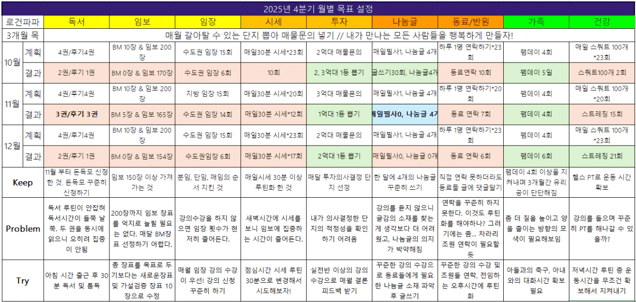 정한 루틴에 맞춰 3개월 계획과 1월 목표를 수치화 했고,