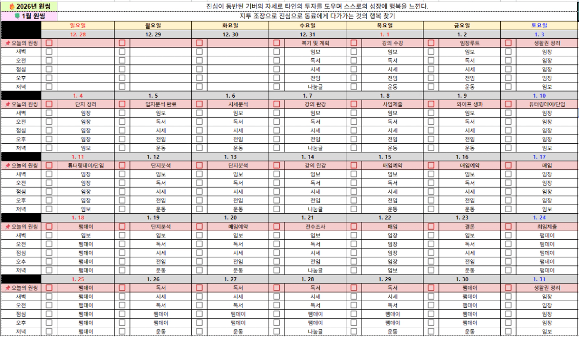이번에 월부에서 제공해준 원씽캘린더 양식으로