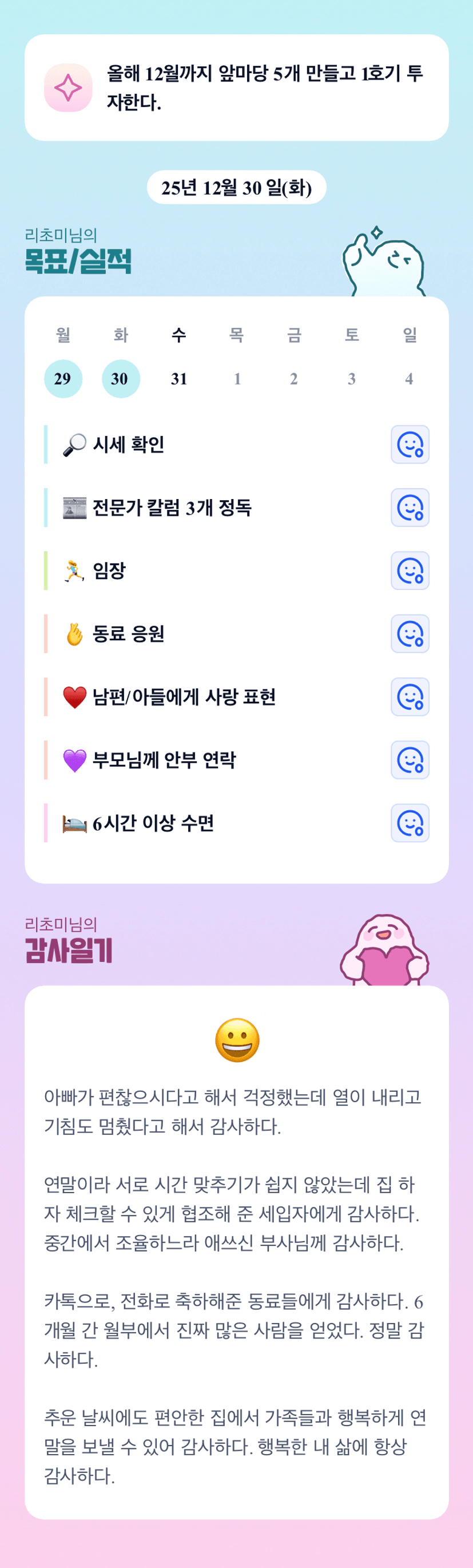 멋진 초미님!! 오늘도 목실감은 동그라미밭이네요!! 새해에도 좋은 일만 가득하길~💛