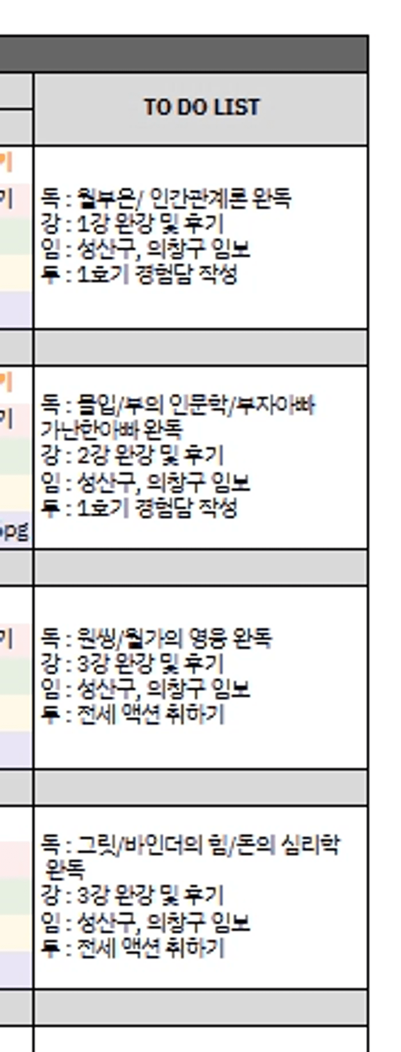 그래도 처음으로 조원분에게 시간을 내서 전화를 드려보고, 무엇보다 독서모임을 하다보니 개개인분들과 가까워지는 느낌이 들어서 좋았다. 잡다한 숏폼들을 보는 시간에 짬을 내서 월부 커뮤니티 눈팅 및 좋아요로 동료분들과 관계를 지속해나가야겠다.