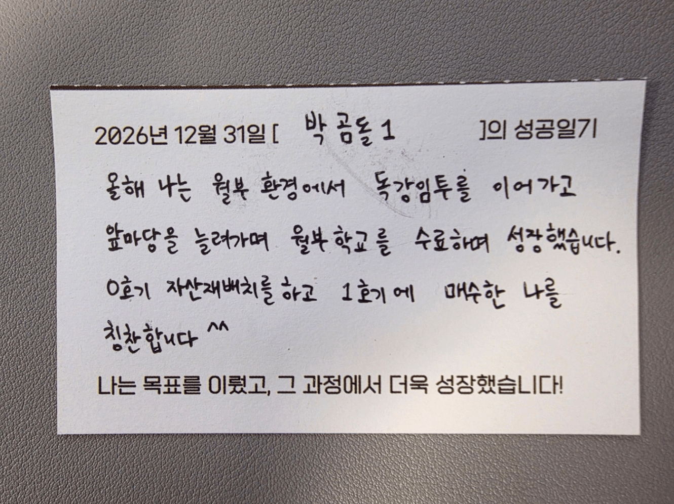 마지막으로, 25년 월부콘에서 작성한 ‘2026년 12월 31일 박곰돌1의 성공일기’ 입니다.